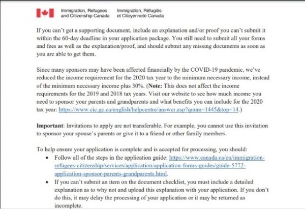 *از آنجایی که شرایط مالی بسیاری از کسانی که تمایل به اسپانسر شدن دارند تحت تاثیر پاندمی کرونا تغییر پیدا کرده است، اداره مهاجرت کانادا حداقل درآمد لازم را برای اسپانسر شدن در برنامه اسپانسرشیپ والدین در سال مالیاتی 2020 کاهش داده است.